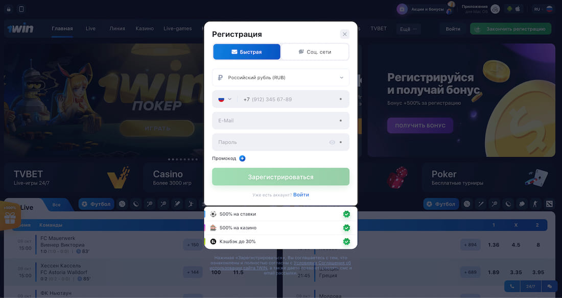 Безопасное онлайн казино 1 win предлагает воспользоваться двумя различными методами регистрации: