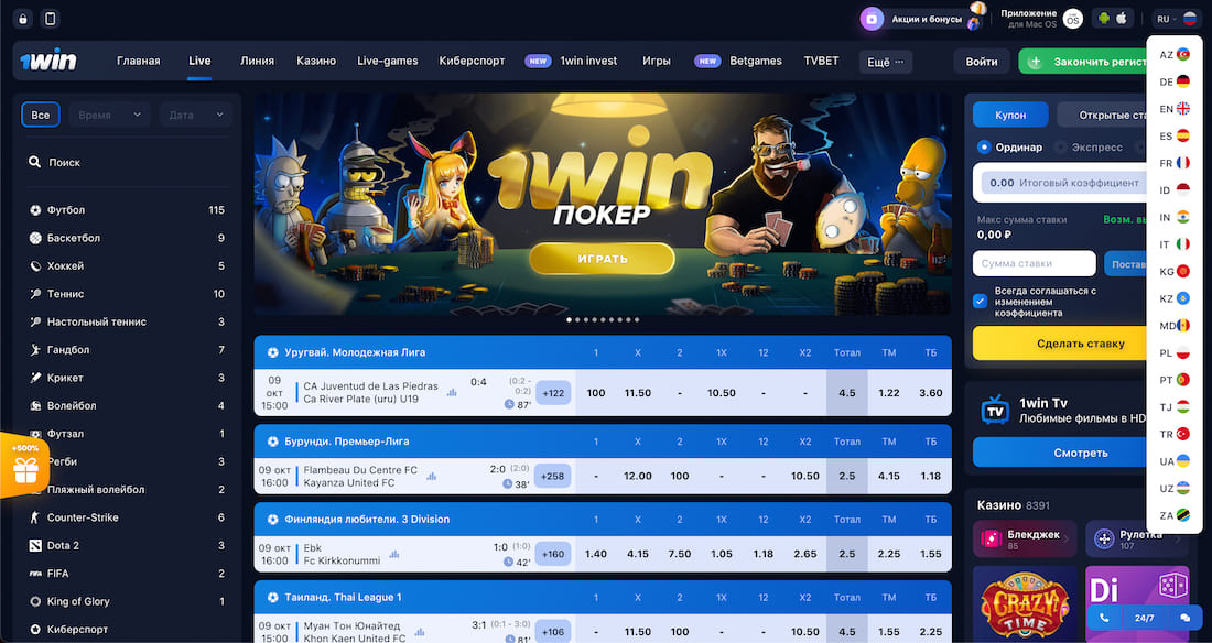 Официальный сайт 1 win выполнен в интуитивно понятном стиле, а пользователям доступен полноценный функционал для игры на деньги и в бесплатном режиме. Вход на сайт можно выполнить с любых устройств, включая Android и iPhone, что позволяет клиентам делать ставки и участвовать в играх из любой локации, где бы они ни находились.